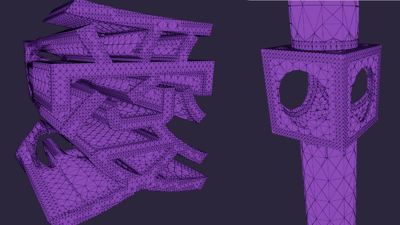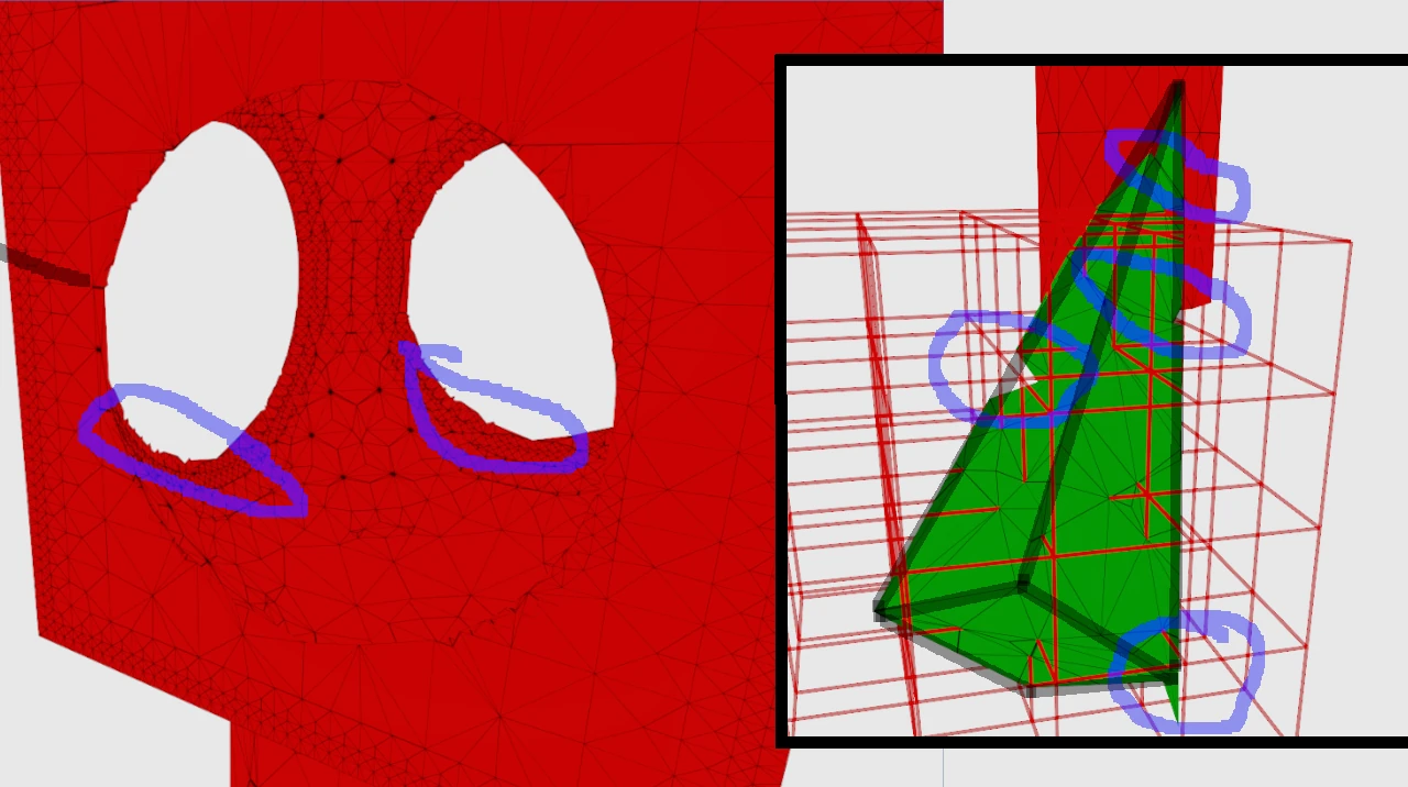 The bottom right one on the prism is due to the 2D sharp feature generation not being aware of the base plane of the prism, not sure if this can be fixed. I think the other ones happen when during 3D sharp feature extraction there’s more than 2 planes, but the correct feature is a specific edge. The algorithm finds the tip of the prism, but you really want to place the vertex on the edge that’s within the cell. I discard sharp vertices that are out of cell, so it uses the average position as triangle fan central vertex by default, creating this ‘dent’ defect. Increasing the hermite data resolution usually fixes almost all defects.